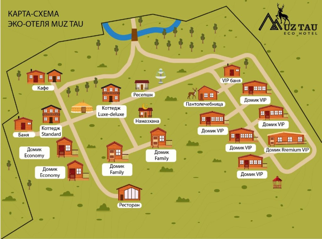 В Эко-отеле Muz Tau мы предлагаем наиболее удобное размещение, чтобы вы могли полностью расслабиться и насладиться природой. Всего у нас есть 8 различных категорий номеров, каждый из которых оснащен всем необходимым для вашего комфорта. Выберите наиболее подходящий вариант для вас и наслаждайтесь отдыхом в гармонии с природой. А если вы пожелаете поправить свое здоровье, то мы предлагаем услуги пантолечения, массажа и бани, чтобы вы почувствовали себя бодрее и более энергично. Забронируйте проживание в нашем отеле уже сегодня и наслаждайтесь отдыхом на природе!